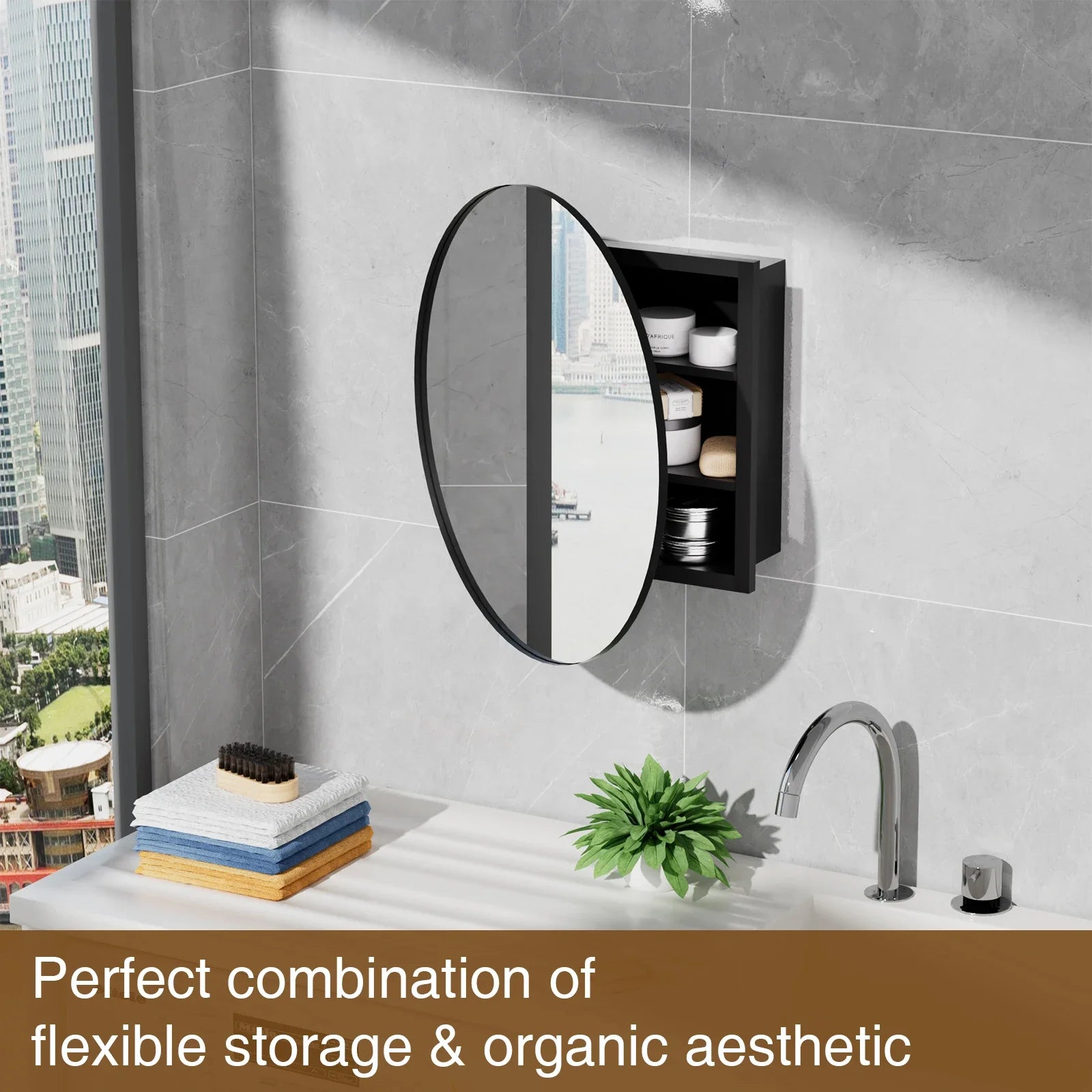 Hign-concerned Round Wall-Mounted Mirror Cabinet With Adjustable Shelf