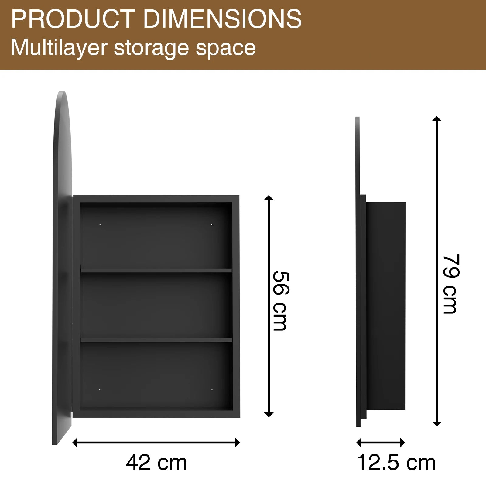 - Delivered fully pre-assembled, its elegant black finish and round silhouette suit your bathroom, kitchen, or entryway, with a large mirrored door for quick checks.