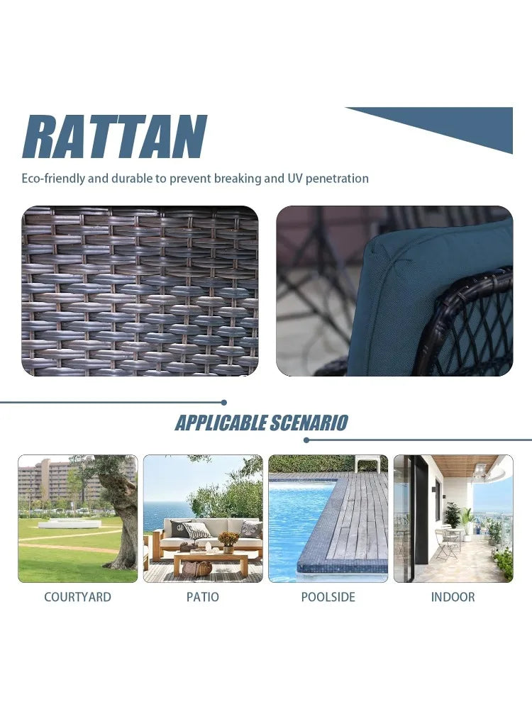 - Durable, weather-ready design: all-weather PE rattan and a tempered glass table withstand rain and temperature swings, so your outdoor space stays ready for use, with a 360 lb weight capacity.